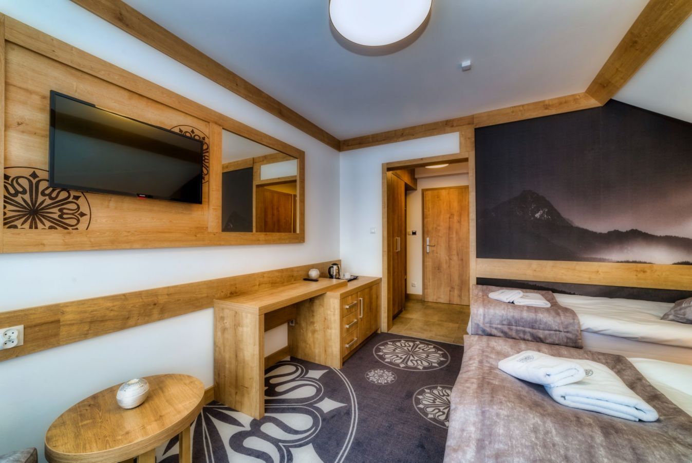 Pokój: trzy łóżka pojedyncze ( możliwość złączenia ), lub jedno łóżko podwójne i jedno łóżko pojedyncze telewizor 22"